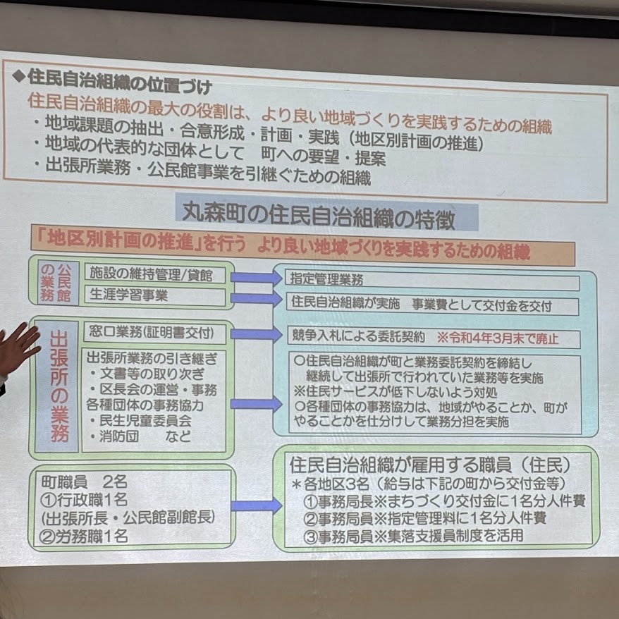 現在、住民有志による再可能エネルギー事業、買い物弱者対策の小規模店舗の経営&移動販売車、ガソリンスタンド事業、廃校利用のデイサービス事業…と、地域運営組織を中心として、地域が生き残るための事業を展開しています。